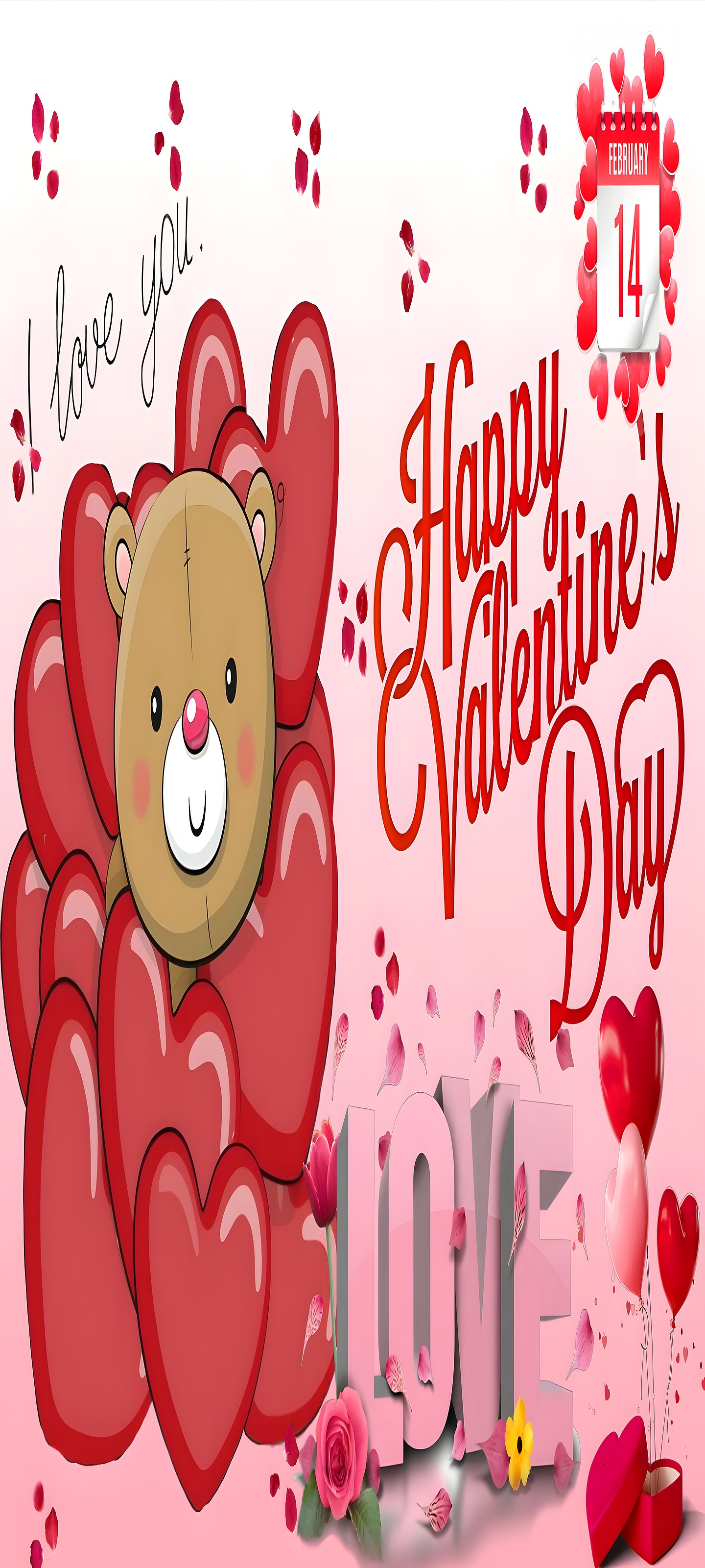 This Cute Valentine Teddy Bear HD Wallpaper blends romantic pink and warm red tones with adorable cartoon styling to create a captivating love-themed illustration. The heart decorations and soft rose petals add a festive Valentine's Day atmosphere, making it a perfect choice for romantic desktop backgrounds or mobile wallpapers. Whether you want a sweet and affectionate image for your laptop, tablet, or smartphone, this wallpaper’s 16:9 aspect ratio adapts beautifully to various screen sizes, including iPhone 15 Plus, Samsung Galaxy S23 Ultra, and MacBook Pro Retina 16-inch displays.