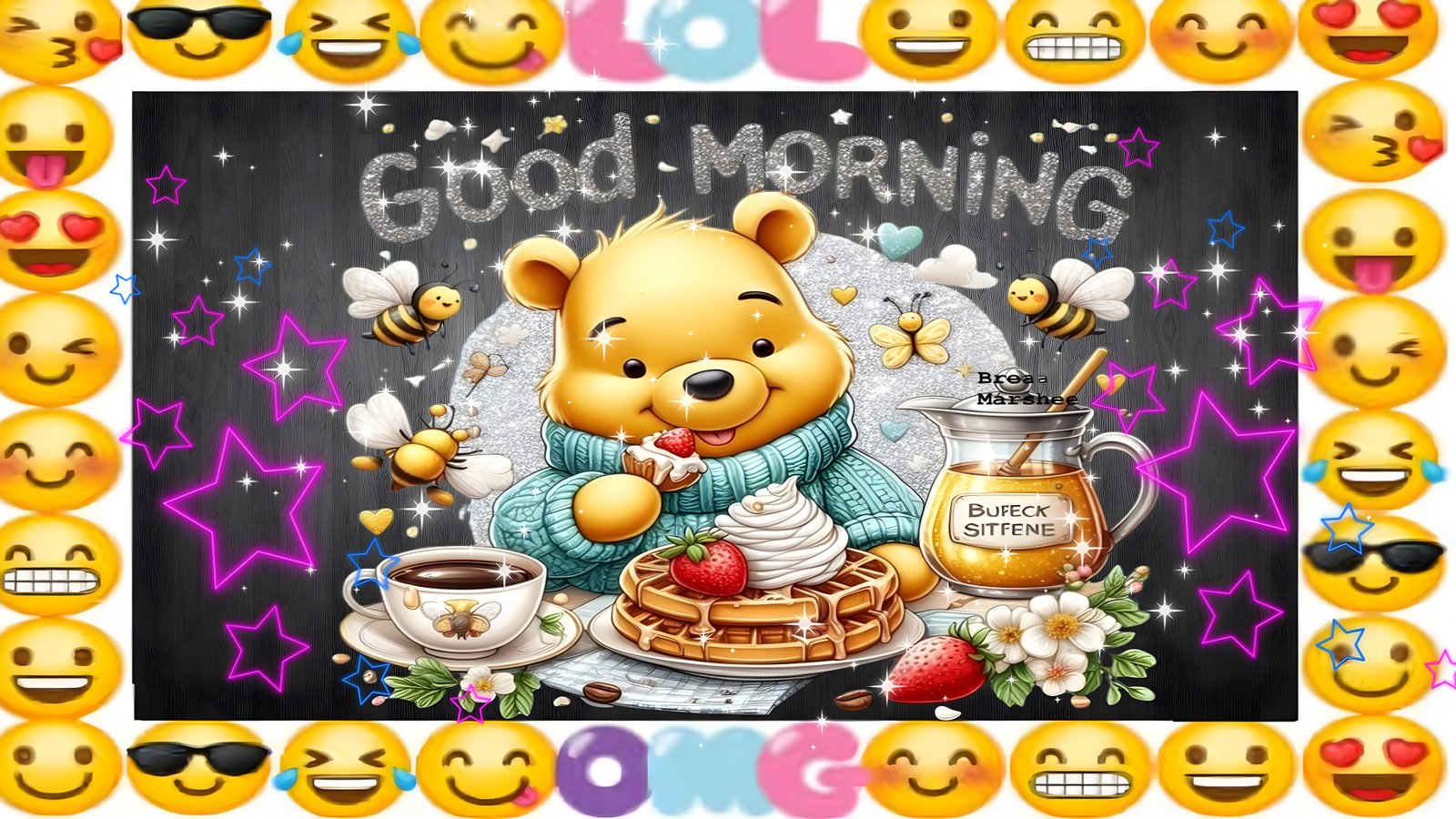 Start your day with a smile by adorning your screens with this delightful 'Cute Bear Breakfast HD Wallpaper.' Featuring an adorable bear enjoying a delicious breakfast of waffles topped with strawberries and whipped cream, this wallpaper radiates warmth and joy. The golden yellow fur of the bear contrasts beautifully with the soft blue sweater, creating a heartwarming scene that is perfect for brightening your mornings. The background is adorned with cheerful elements like flowers and buzzing bees, enhancing the overall cheerful ambiance of the image. This high-resolution wallpaper, with an impressive resolution of 7680×4320, is ideal for various devices, ensuring that your screens are filled with positivity and charm.