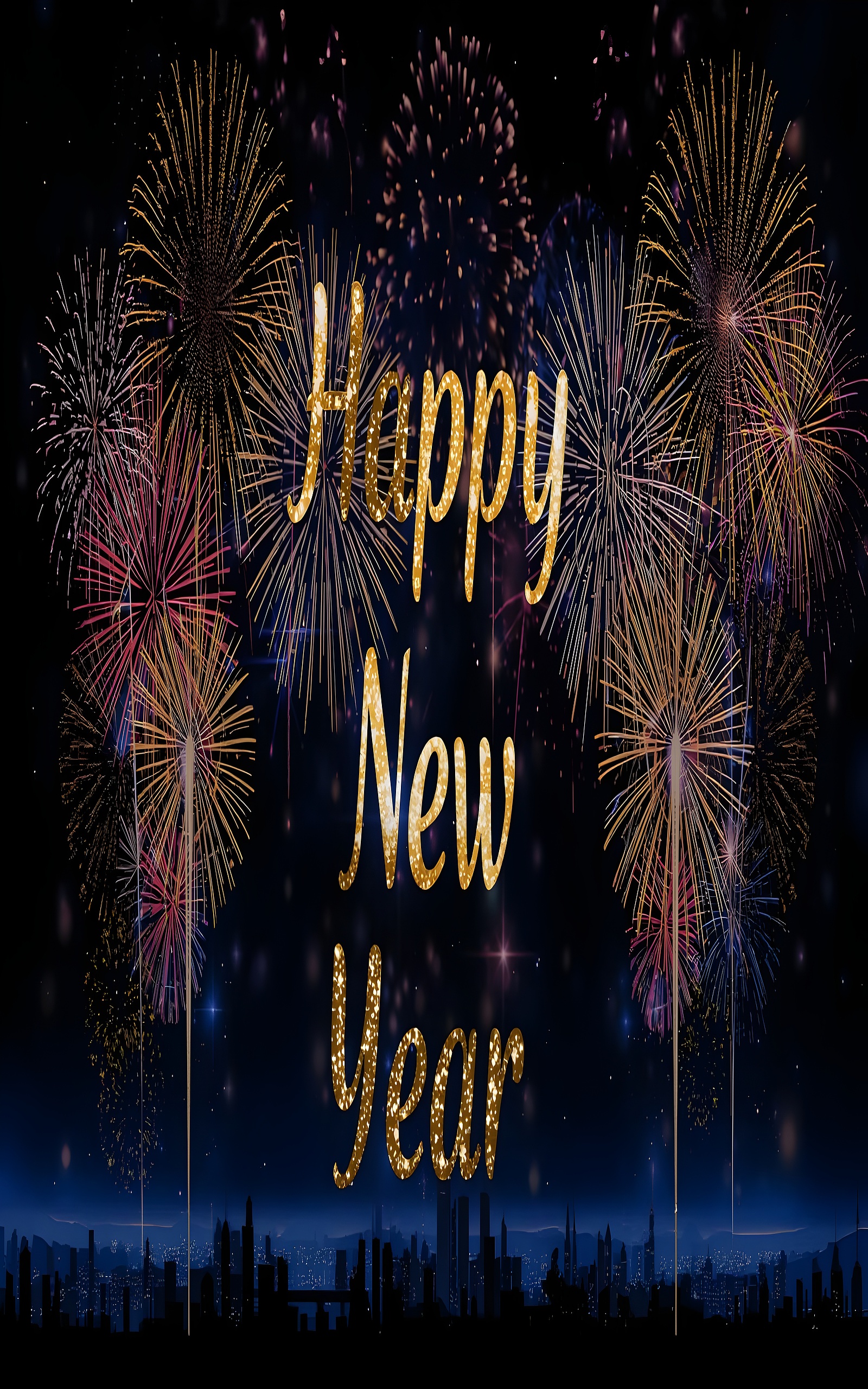 Vibrant Fireworks and Festive Text for New Year Celebration