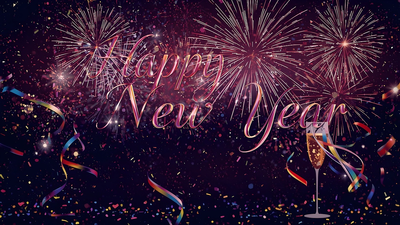 Celebrate the arrival of a new year with this stunning Happy New Year Fireworks HD Wallpaper, capturing the dazzling spectacle of fireworks bursting against a deep night sky. This high-resolution wallpaper showcases a vivid display of colorful explosions, featuring bright gold, fiery red, and sparkling white sparks that light up the scene with festive energy. The elegant script of "Happy New Year" glows softly amidst the vibrant fireworks, adding a warm and inviting touch to your desktop or mobile background. Perfect for those looking to infuse their devices with a joyful and celebratory atmosphere, this wallpaper brings the magic of New Year's Eve right to your screen.