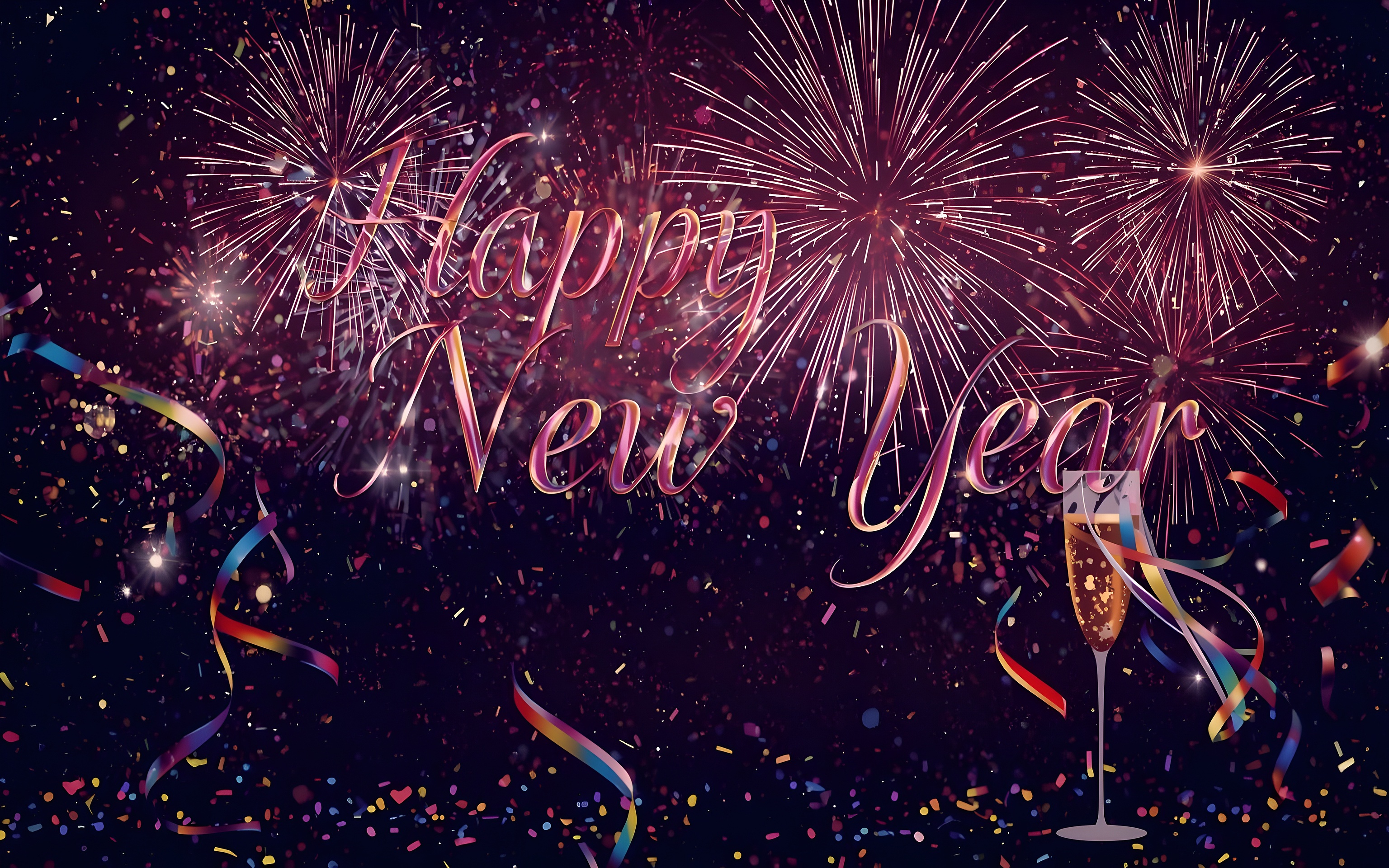 The wallpaper’s rich palette of deep purple hues in the background contrasts beautifully with the bright gold and red fireworks, creating a dynamic and lively composition. The intricate textures of the fireworks’ trails and the subtle confetti-like sparkles scattered across the image add depth and movement, making it an ideal choice for anyone seeking a premium HD wallpaper that embodies festivity and excitement. With an original resolution of 6400×3584, this wallpaper offers exceptional clarity and detail, making it suitable for a wide range of devices and screen sizes.
