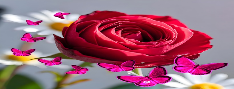 Red Rose Butterflies Daisies – Vivid Floral Fantasy