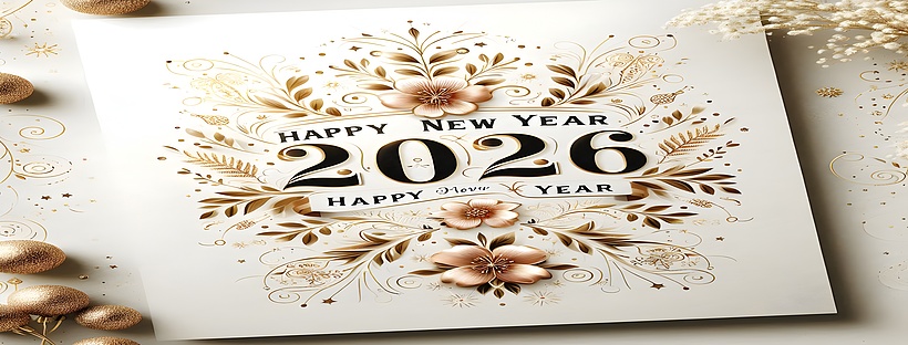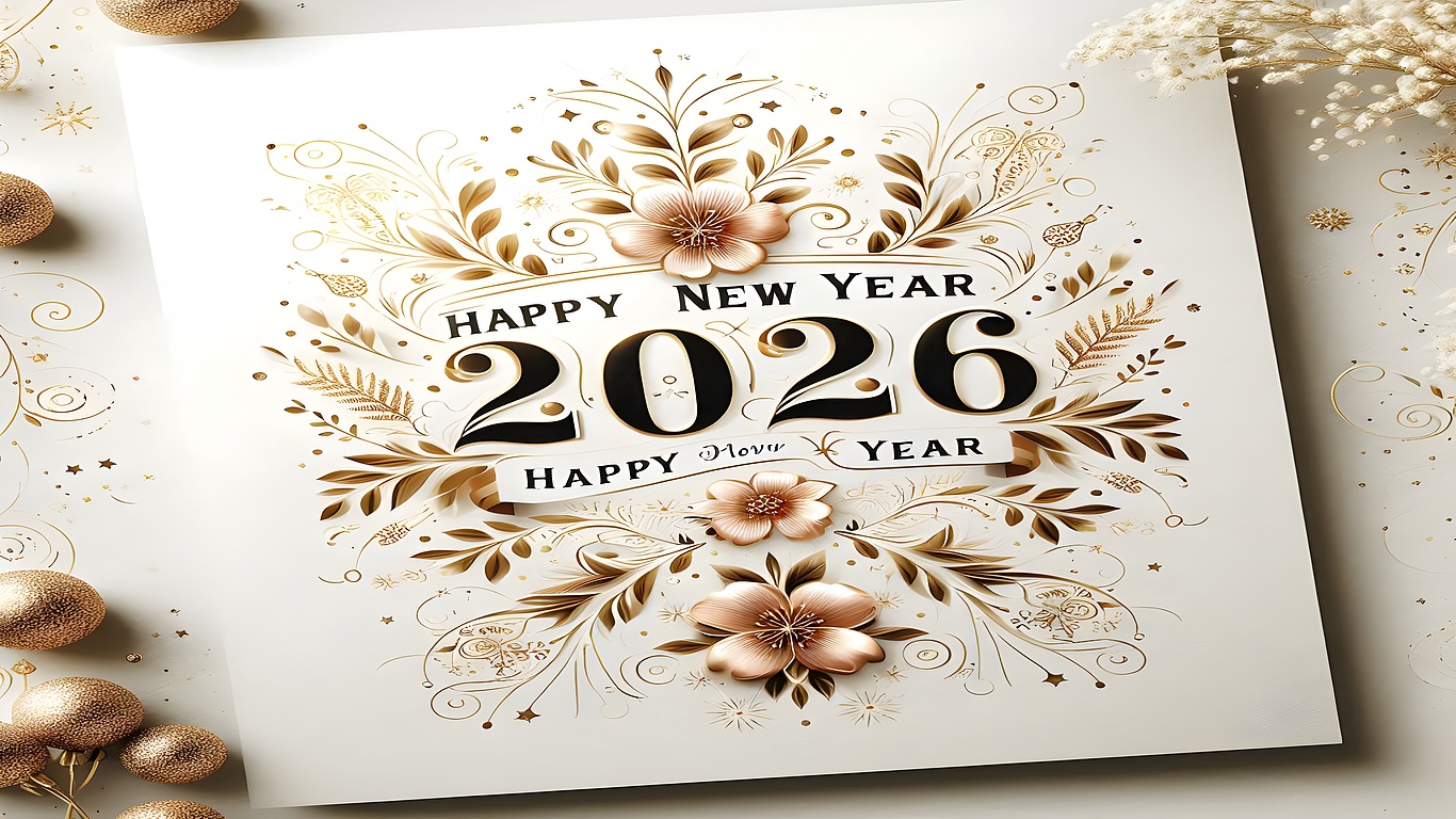 Elegant 2026 New Year Card Wallpaper with Gold Floral Design