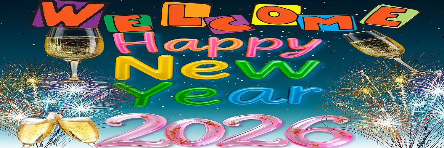 As the clock strikes midnight, the vibrant colors of the Festive New Year 2026 HD Wallpaper come alive, inviting everyone to celebrate the arrival of a new year. This lively design features a cheerful mix of bright yellow, pink, and green hues, set against a vibrant blue background. The playful typography spells out 'Welcome Happy New Year 2026,' perfectly capturing the joyous spirit of the occasion. With sparkling fireworks and elegant champagne glasses, this wallpaper embodies the excitement and hope that a new year brings.