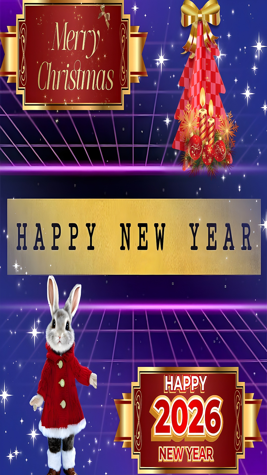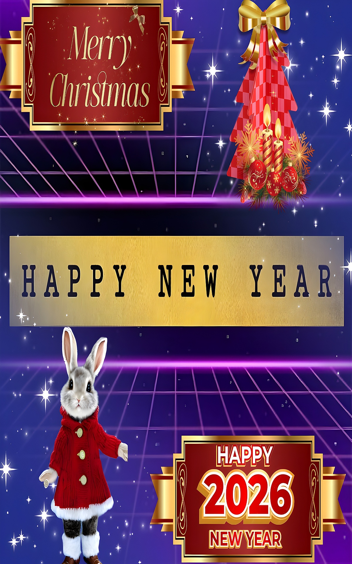 As the holiday season approaches, the "Festive New Year HD Wallpaper" captures the essence of joy and celebration. This vibrant design features a rich deep blue background adorned with golden accents, creating a festive atmosphere perfect for welcoming the New Year. The cheerful elements, including a charming rabbit dressed in red and a sparkling Christmas tree, evoke a sense of warmth and happiness, making it an ideal choice for your desktop or mobile wallpaper. With a resolution of 4320×4320, this wallpaper is perfect for various devices, ensuring that your screens shine with holiday cheer.