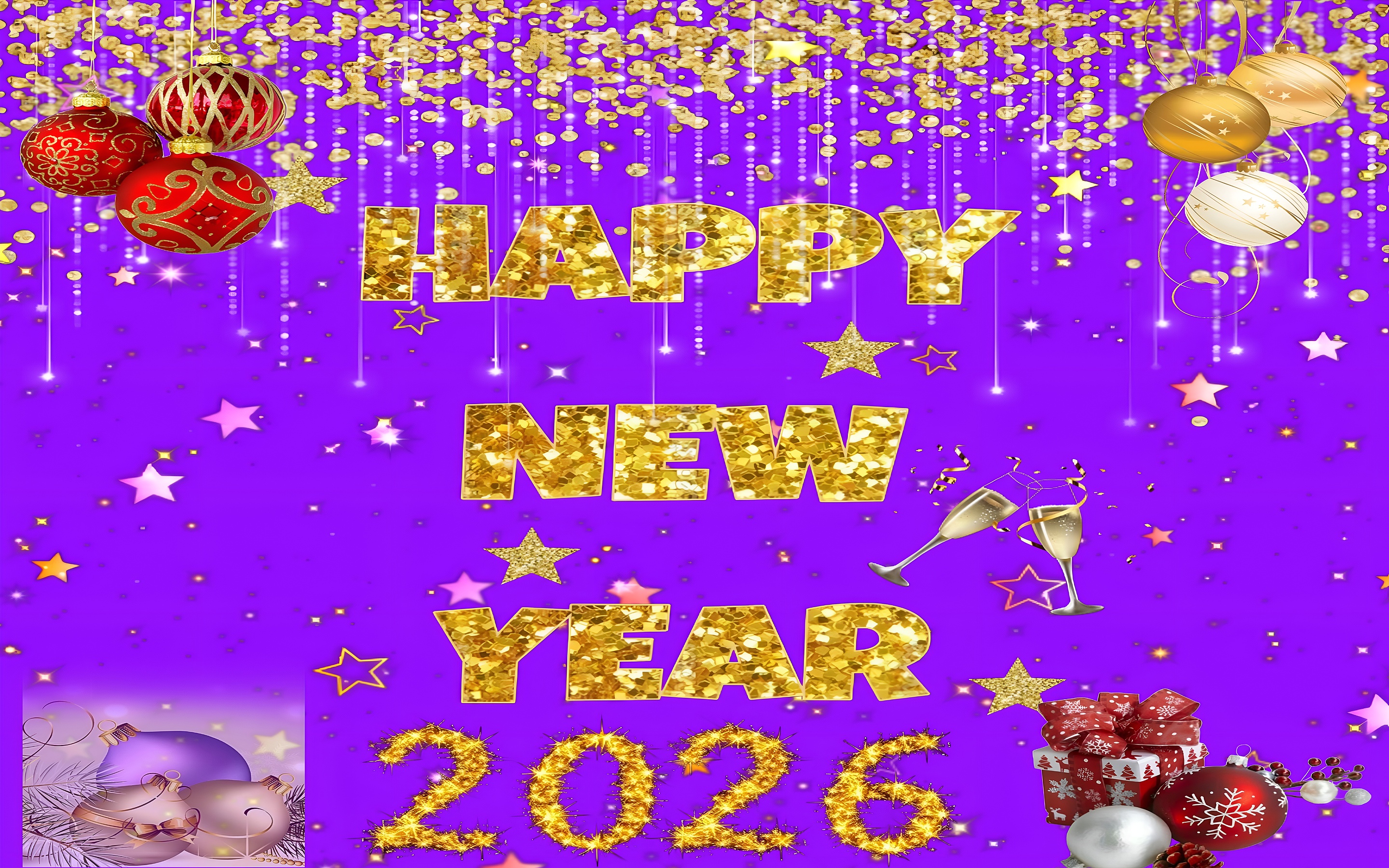 As we approach the dawn of a new year, the 'Festive New Year 2026 HD Wallpaper' captures the essence of celebration and joy. This vibrant wallpaper features a rich purple background adorned with sparkling golden stars, creating a festive atmosphere that is perfect for welcoming the New Year. The design is further enhanced by colorful ornaments and celebratory elements, making it an ideal choice for those looking to add a touch of glamour to their digital spaces. With its lively colors and cheerful message, this wallpaper serves as a reminder of new beginnings and joyous moments.