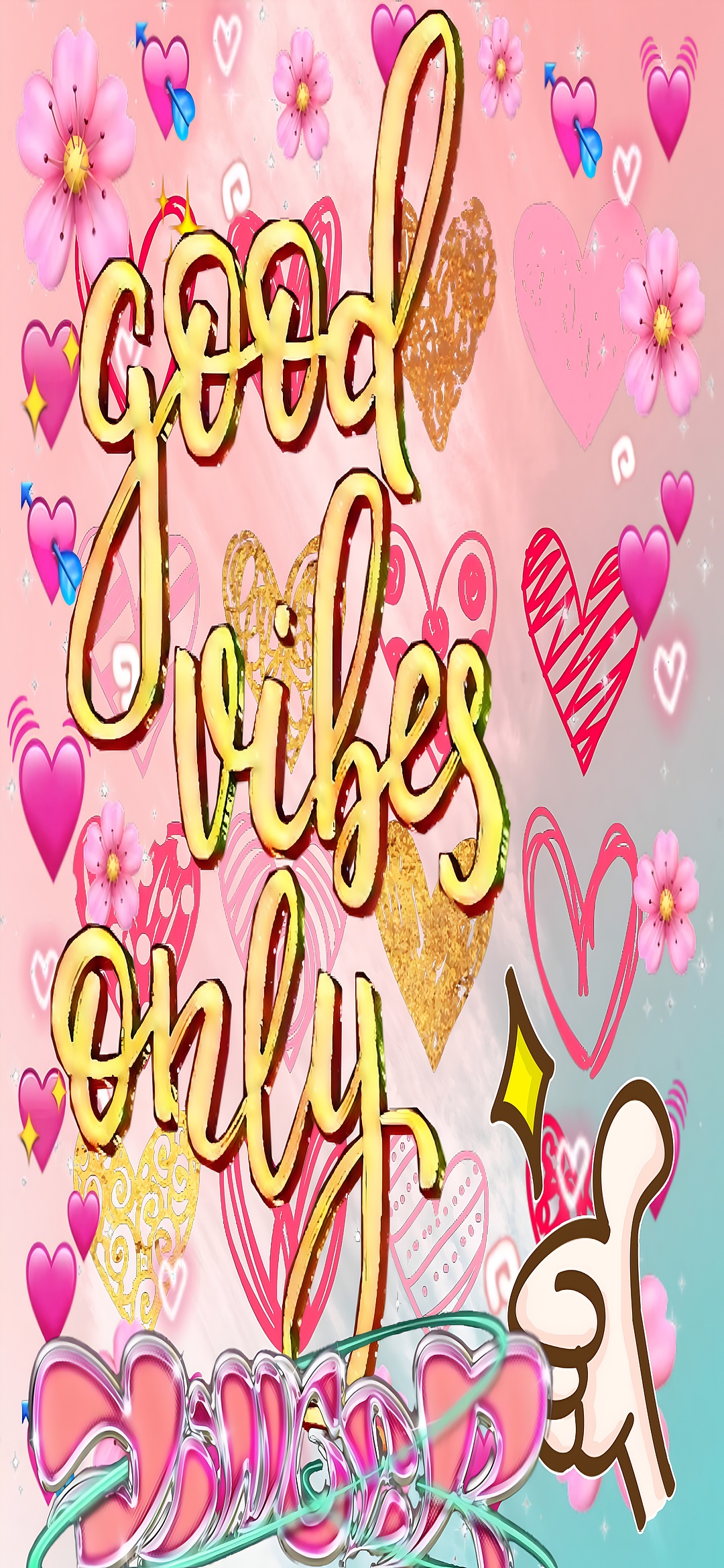 This HD wallpaper titled Good Vibes Only radiates joy with its vibrant gradient background blending pink and light blue hues. The golden cursive text stands out boldly, surrounded by delightful cherry blossoms, sparkles, hearts, and emoji-style icons like thumbs-up and love symbols. The design evokes a sense of optimism and lighthearted energy, making it perfect for those who want their screen to reflect a cheerful mood. Ideal for mobile devices, especially iPhones, this vertical wallpaper brings a splash of color and motivation to your everyday digital experience.