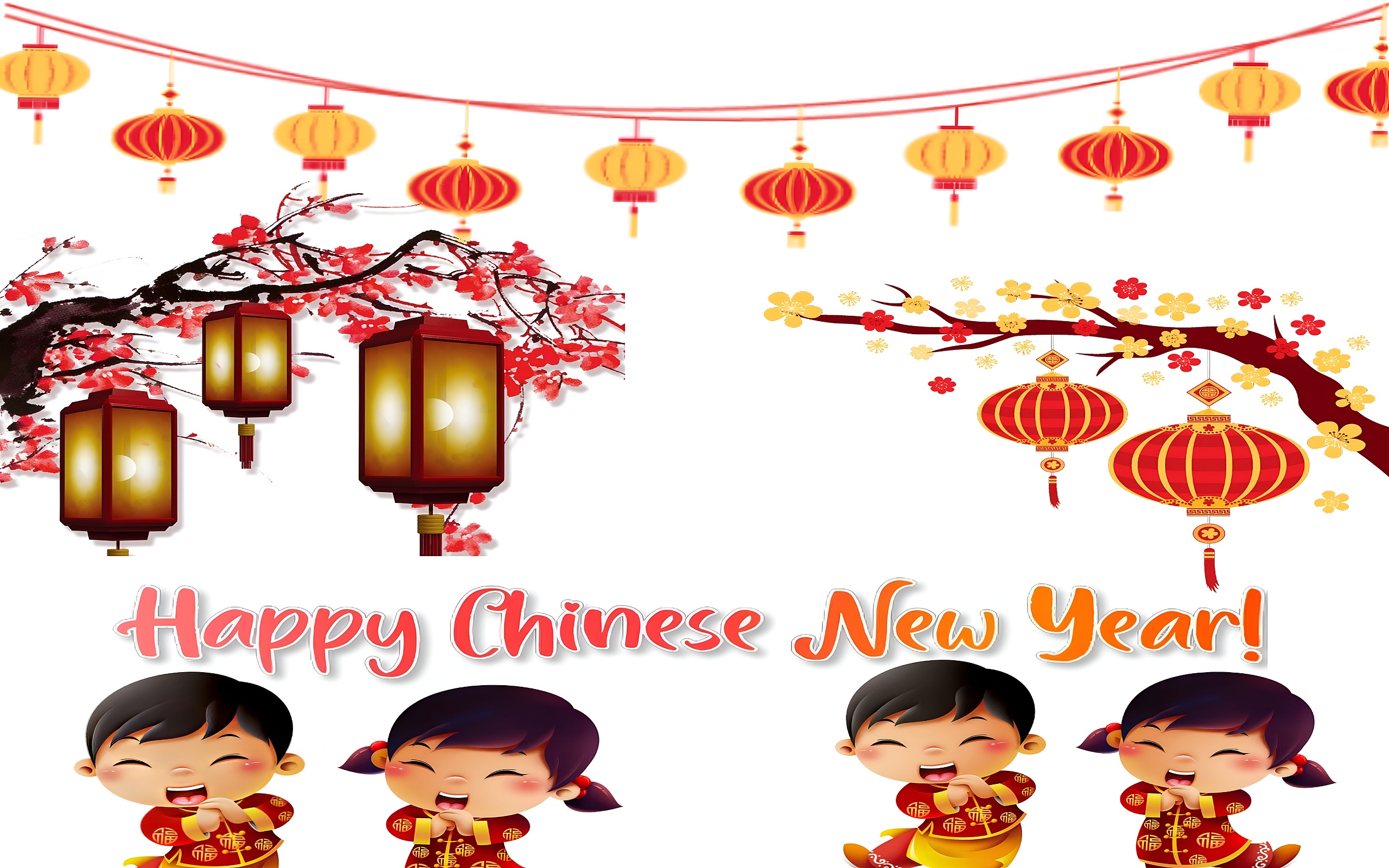 Happy Chinese New Year Celebration HD Wallpaper with Festive Lanterns and Joyful Children