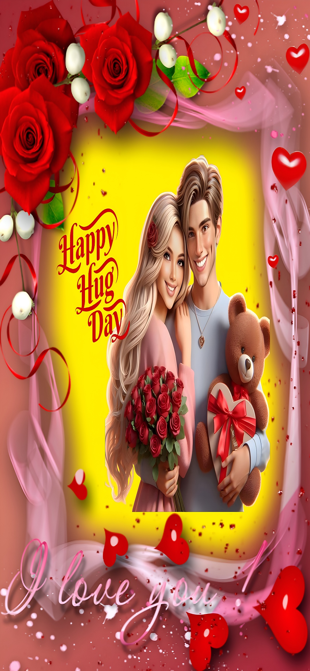 Romantic and Festive Elements in Happy Hug Day Wallpaper