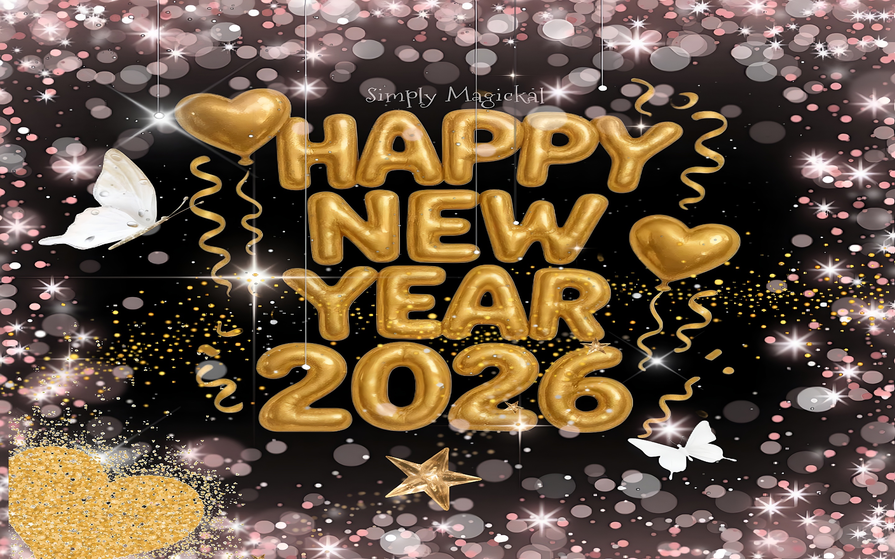 As the year draws to a close, the excitement of welcoming a new beginning fills the air. The 'Happy New Year 2026 Celebration Wallpaper' captures this joyous spirit with its vibrant design. Featuring golden balloons and sparkling confetti against a deep black backdrop, this wallpaper radiates a festive atmosphere perfect for ushering in the new year. The combination of gold and pink accents adds a touch of elegance, making it an ideal choice for anyone looking to celebrate in style.