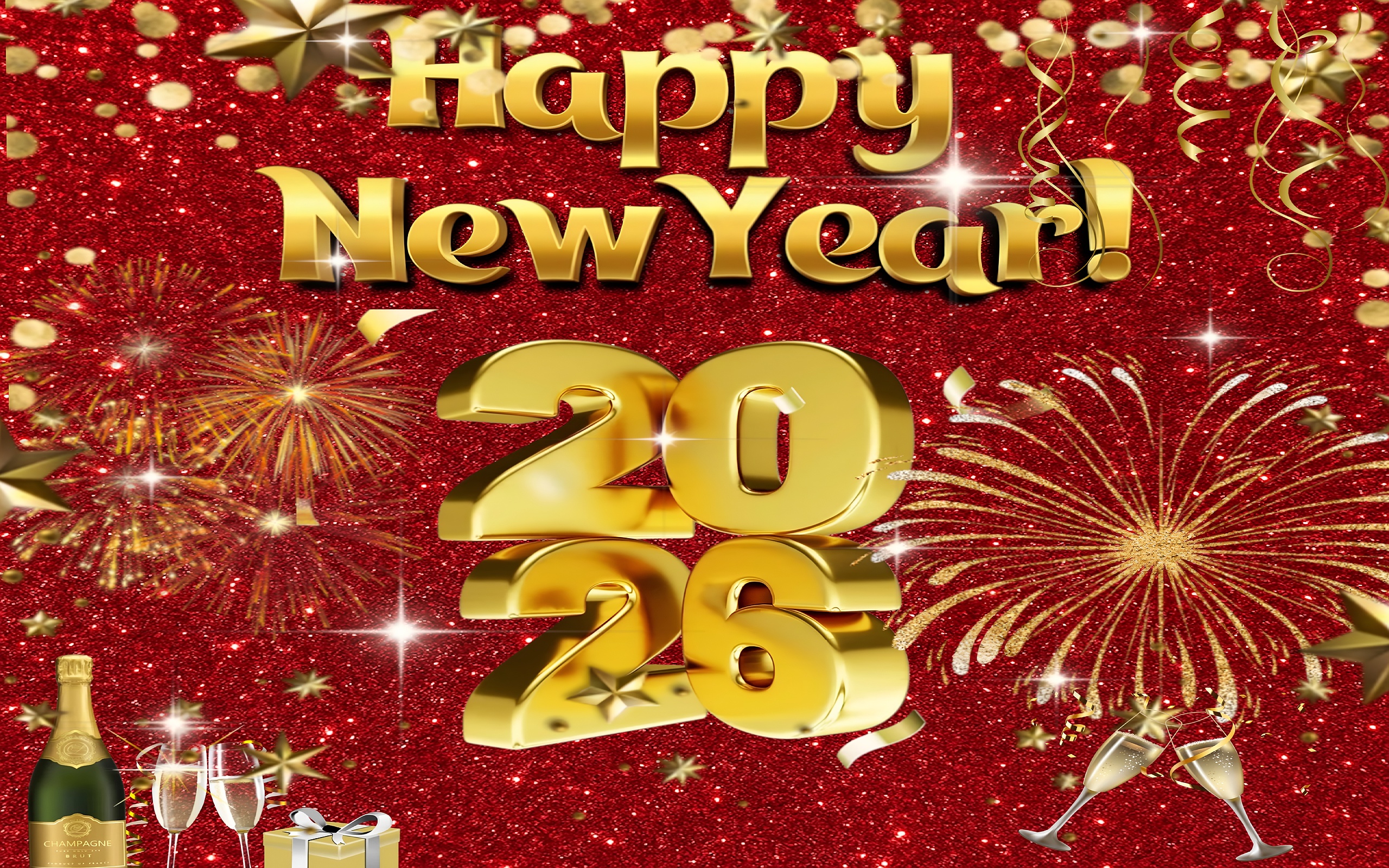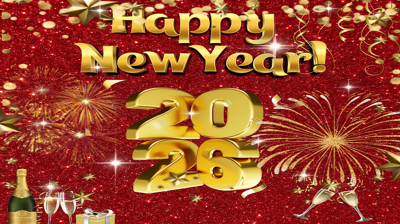 Celebrate the arrival of 2026 with this dazzling Happy New Year 2026 Celebration Wallpaper, designed to bring vibrant energy and festive cheer to your digital devices. The wallpaper features bold, three-dimensional golden text that reads “Happy New Year!” and “2026,” set against a rich, glittering red background that instantly evokes warmth and excitement. This high-resolution wallpaper captures the essence of New Year’s Eve celebrations with sparkling fireworks, shimmering stars, and elegant gold ribbons that cascade gracefully across the scene. The overall composition is both luxurious and joyful, making it a perfect desktop background or mobile wallpaper to welcome the new year in style.