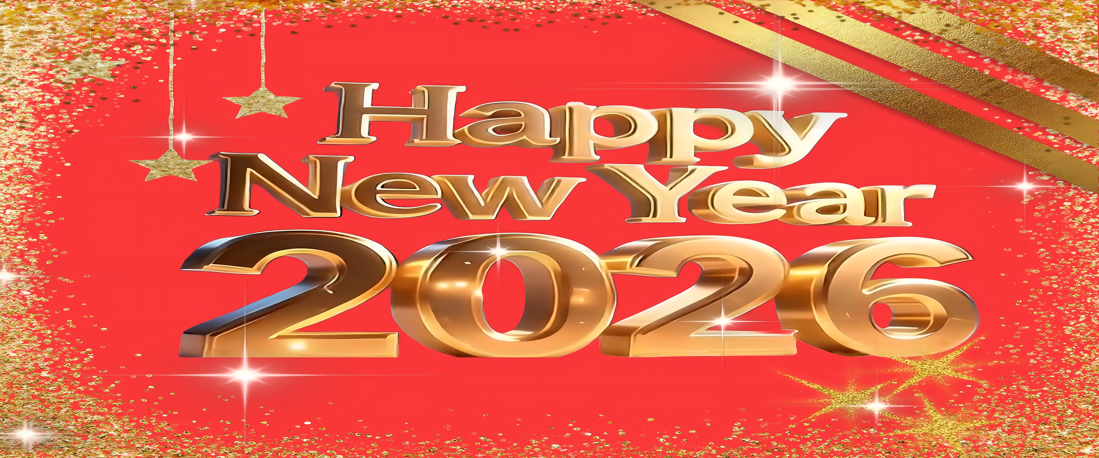Celebrate the arrival of 2026 with this stunning Happy New Year 2026 Gold Wallpaper, designed to bring a luxurious and festive atmosphere to your digital devices. The wallpaper features bold, three-dimensional golden text that reads "Happy New Year 2026," set against a vibrant red background. This striking combination of gold and red creates a warm, celebratory mood perfect for welcoming the new year with style and elegance. The glittering gold accents and sparkling star elements add a touch of glamour and festivity, making this wallpaper an ideal choice for holiday-themed desktop backgrounds or mobile wallpapers.