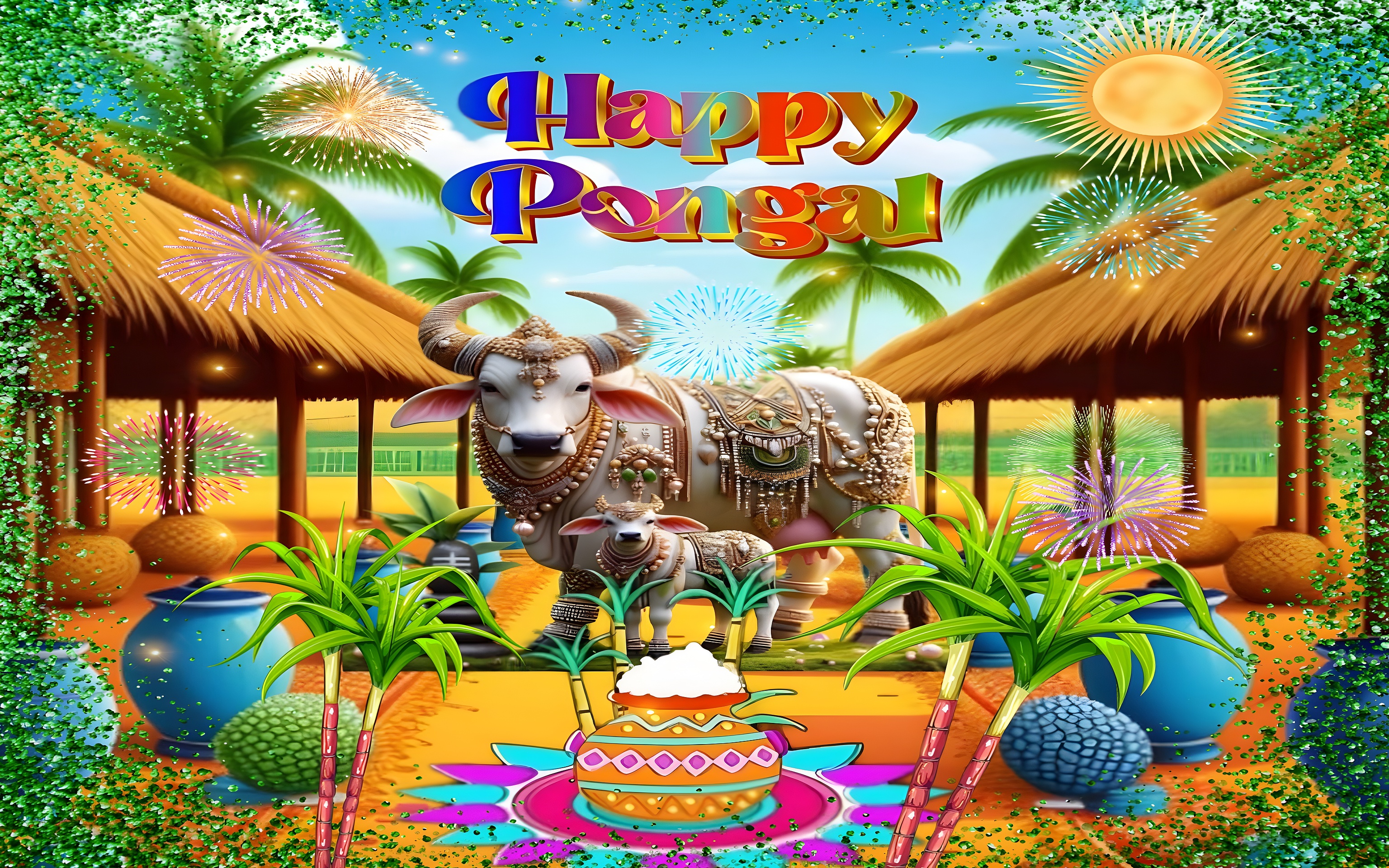 Happy Pongal Festival HD Wallpaper – Vibrant Harvest Celebration Art