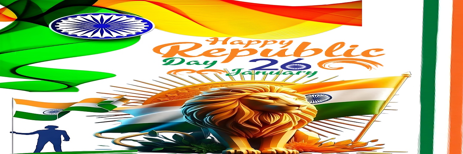 Celebrate the spirit of India’s Republic Day with this stunning Happy Republic Day India Wallpaper, designed to evoke patriotism and national pride. This high-resolution wallpaper features the iconic Indian tricolor flag flowing dynamically in saffron orange, white, and India green, complemented by the deep navy blue Ashoka Chakra. The centerpiece is a majestic golden lion sculpture, symbolizing strength and courage, set against a radiant sunburst pattern that adds depth and warmth to the composition. The text "Happy Republic Day 26 January" is prominently displayed in festive orange, green, and blue hues, enhancing the celebratory mood.