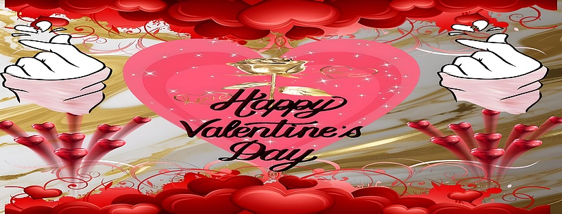 Celebrate the spirit of love with this enchanting Happy Valentine's Day Heart Art wallpaper, designed to bring warmth and romance to any screen. The central focus is a large, radiant pink heart adorned with sparkling stars and a luxurious golden rose, symbolizing timeless affection and elegance. Surrounding this heart are layers of vibrant red hearts and delicate swirls, creating a festive and dynamic composition that captures the essence of Valentine's Day. The artwork features two stylized hands on either side, making a charming finger-heart gesture, adding a playful and contemporary touch to the romantic theme.