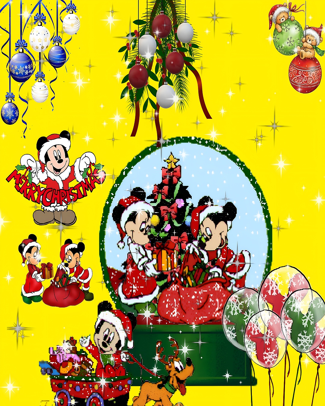 Celebrate the joy of the holiday season with this vibrant Mickey Mouse Christmas HD wallpaper. Featuring beloved Disney characters like Mickey and Minnie Mouse, this wallpaper captures the essence of festive spirit with its bright yellow background and sparkling white accents. The playful scene showcases the characters dressed in cheerful red outfits, surrounded by colorful ornaments and candy canes, creating a delightful atmosphere that resonates with the joy of Christmas. This high-resolution wallpaper is perfect for bringing a touch of magic to your devices, making it an ideal choice for both desktop and mobile backgrounds.