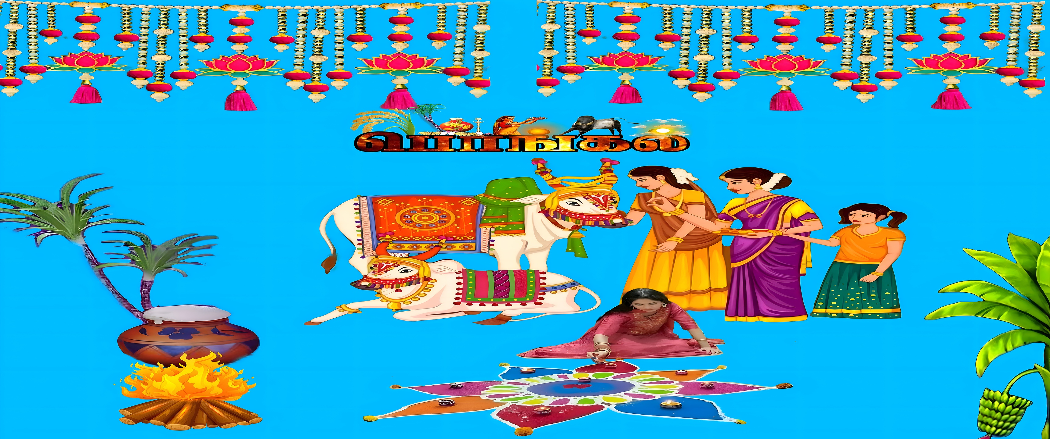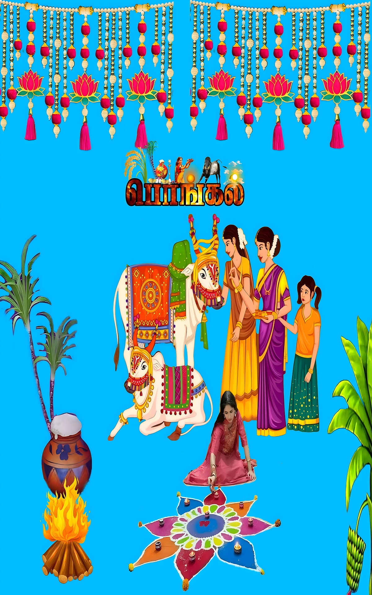 Pongal Festival Celebration Art HD Wallpaper – Vibrant Traditional Indian Scene