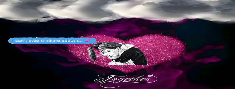This wallpaper’s artistic elements include a harmonious blend of vibrant pink and deep purple shades that create a warm, passionate mood. The heart shape around the couple acts as a symbolic frame, emphasizing love and unity. The soft, fluffy clouds above add a surreal touch, enhancing the romantic atmosphere. The black-and-white sketch style of the couple contrasts beautifully with the colorful background, highlighting their emotional connection. This combination of textures and colors makes this wallpaper a perfect fit for those looking for a romantic desktop background or mobile wallpaper that conveys intimacy and affection.