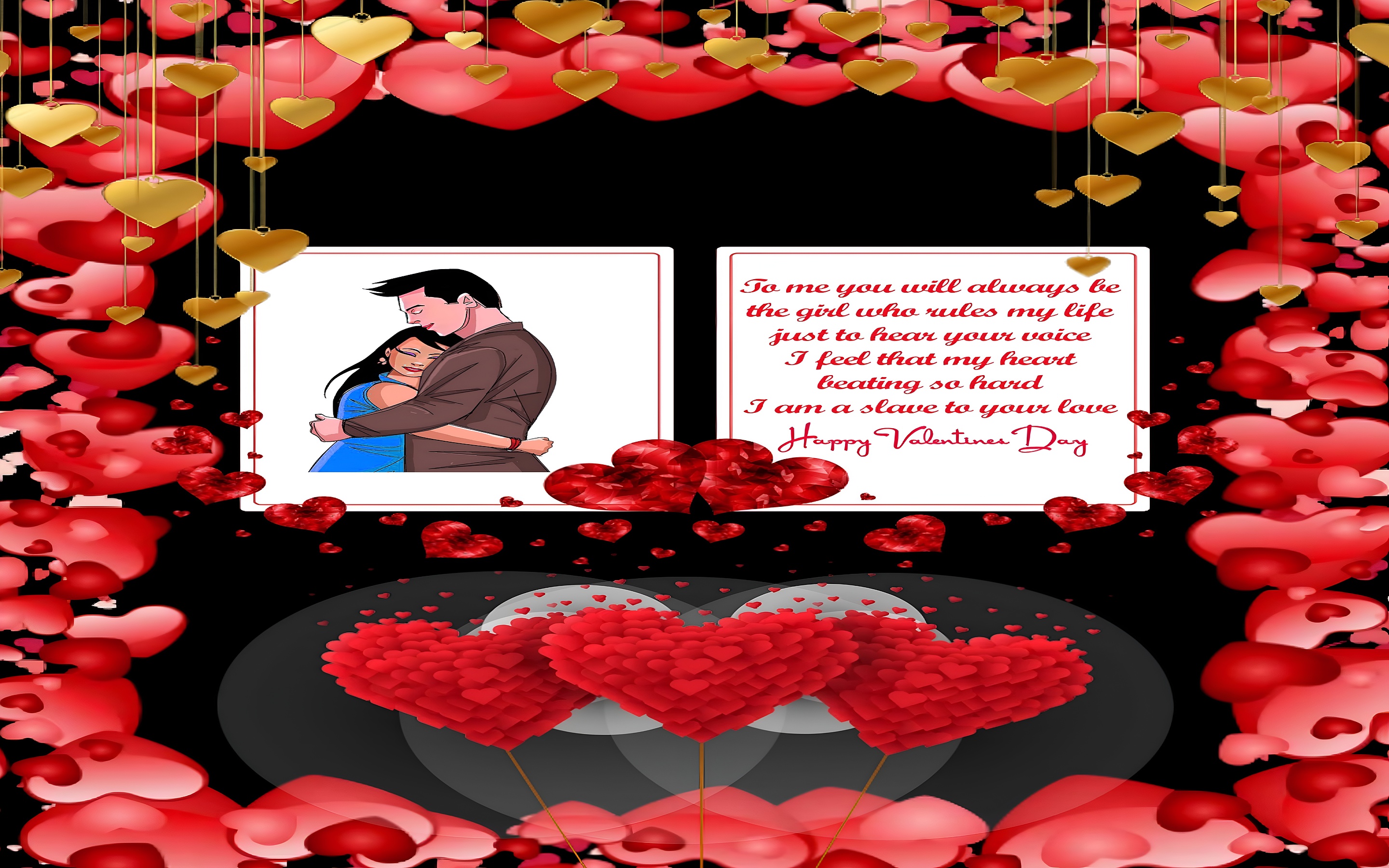 This Romantic Valentine Love Illustration is a perfect blend of affectionate imagery and elegant design, making it a standout choice for anyone seeking a high-definition background that celebrates love. The vibrant reds, golden accents, and heartfelt message combine to create a warm and inviting atmosphere that resonates deeply with viewers. Whether used as a desktop background or mobile wallpaper, this artwork brings a touch of romance and celebration to your screen.