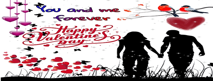 This Romantic Valentine’s Day Couple Wallpaper beautifully captures the essence of love and togetherness with a striking silhouette of a couple holding hands. Set against a clean white background, the image combines artistic elements like floating red hearts, delicate black butterflies, and a charming pair of red-breasted birds perched on a branch, creating a warm and affectionate atmosphere perfect for Valentine’s Day. The text “You and me forever” in playful blue and red lettering, alongside an elegant “Happy Valentine’s Day” script, adds a heartfelt message that enhances the romantic theme.