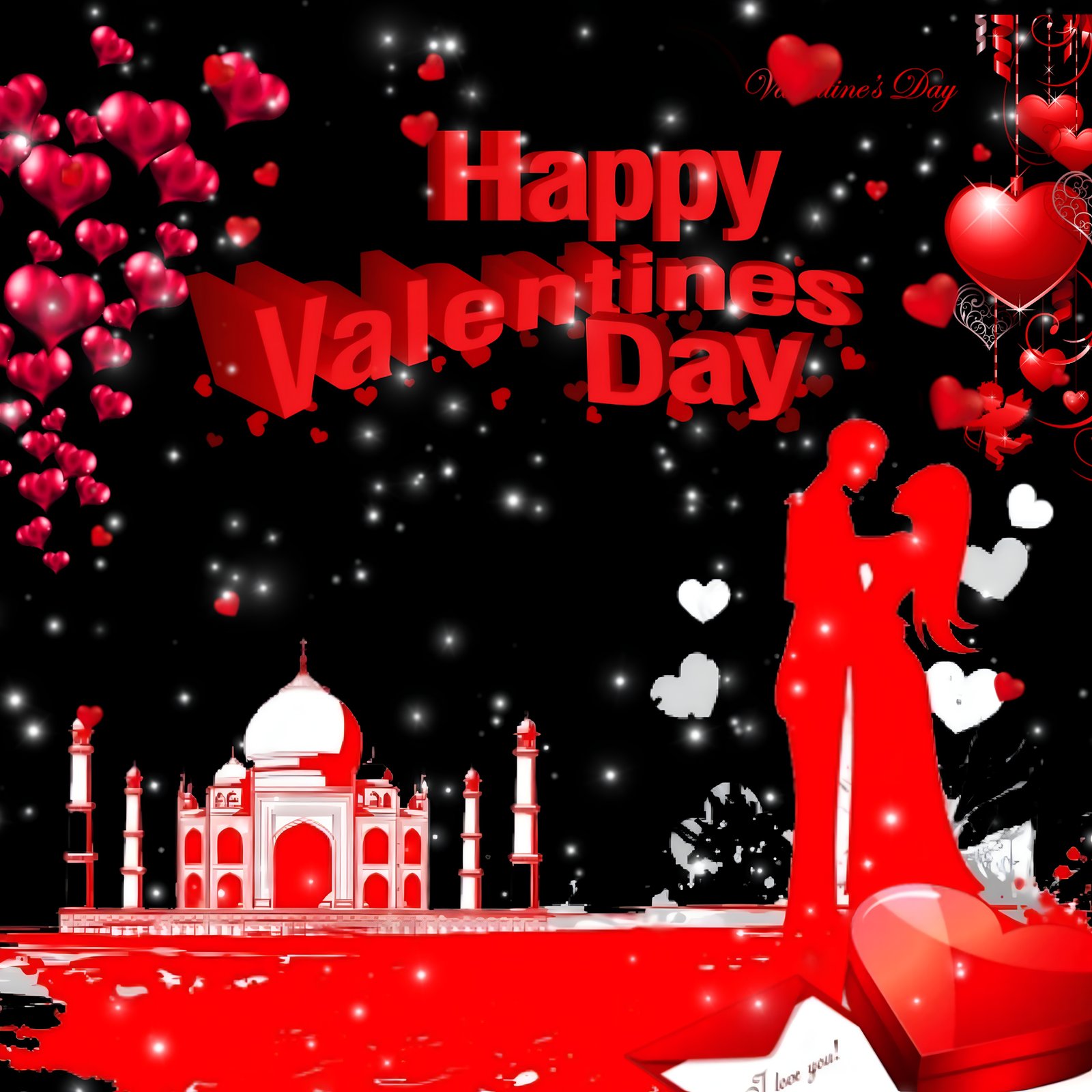 Celebrate love with our stunning Romantic Valentine's Day HD Wallpaper, a perfect blend of passion and elegance. This captivating image features a silhouette of a couple embracing against a backdrop of the iconic Taj Mahal, symbolizing eternal love. The dominant colors of deep red and black create a striking contrast, while playful white hearts and floating balloons add a whimsical touch. This wallpaper is ideal for those looking to infuse their devices with a romantic atmosphere, making it a perfect choice for Valentine's Day celebrations.