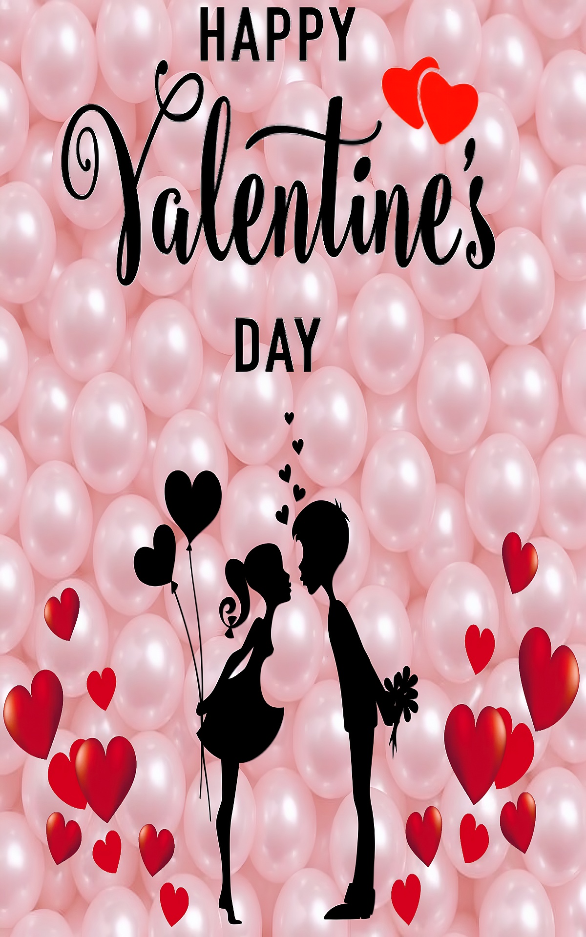 The soft pink and pearl white hues blend beautifully with the deep red hearts and black silhouettes, creating a balanced and eye-catching color palette. This wallpaper is ideal for those looking to celebrate Valentine's Day with a warm and elegant visual theme. Its high-definition quality ensures it stands out as premium wall art, perfect for anyone wanting to add a touch of romance to their digital devices.