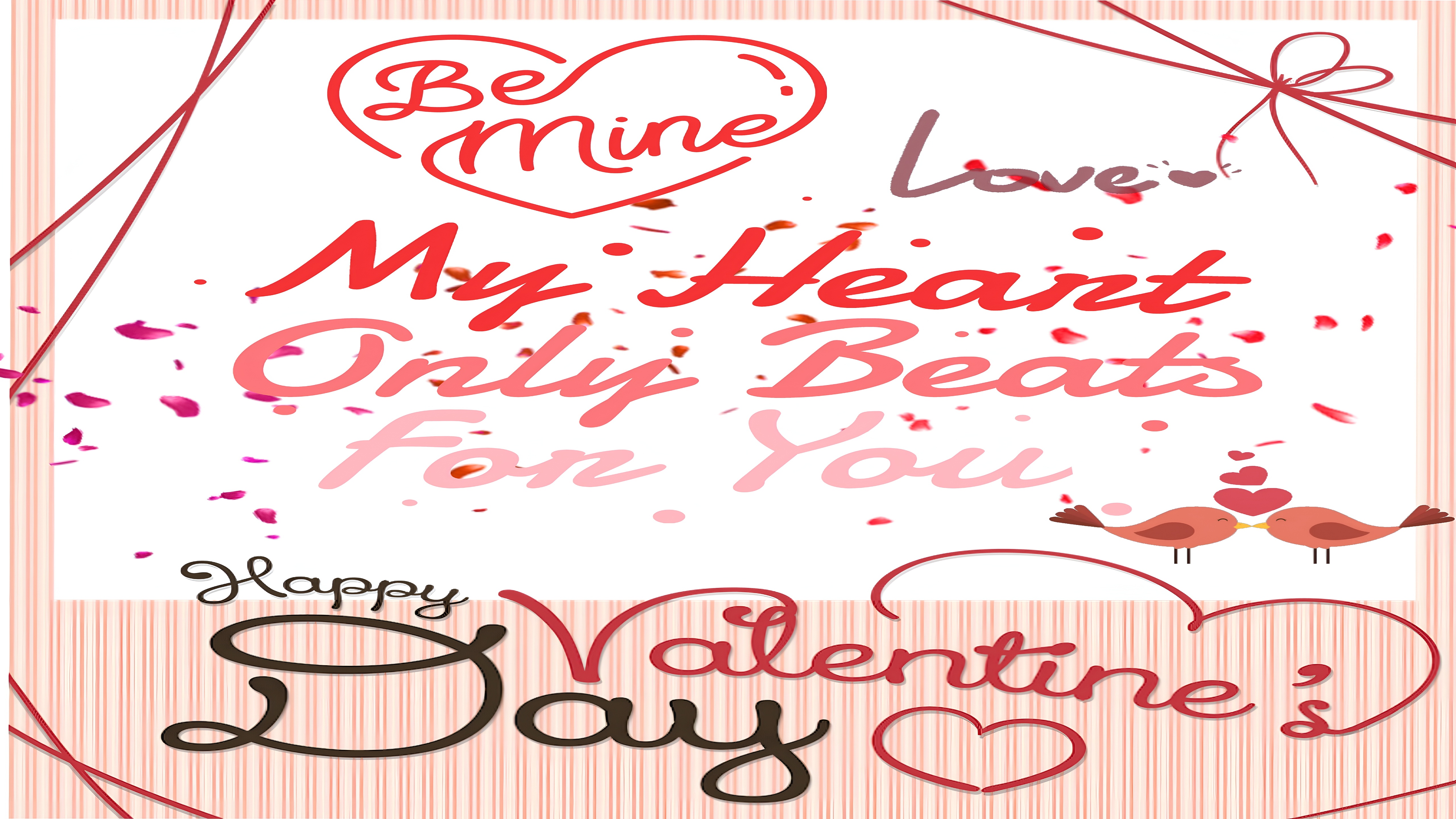 This Valentine's Day Romantic Love Wallpaper beautifully captures the essence of affection and heartfelt emotions with its charming design and warm color palette. The main subject is a loving message that reads, "My Heart Only Beats For You," surrounded by delicate red and pink confetti that adds a festive and celebratory touch. The composition is framed with thin red ribbons tied into bows, enhancing the romantic and gift-like atmosphere of the wallpaper. Two adorable birds facing each other with tiny hearts above them symbolize love and togetherness, making this wallpaper perfect for expressing romantic feelings.
