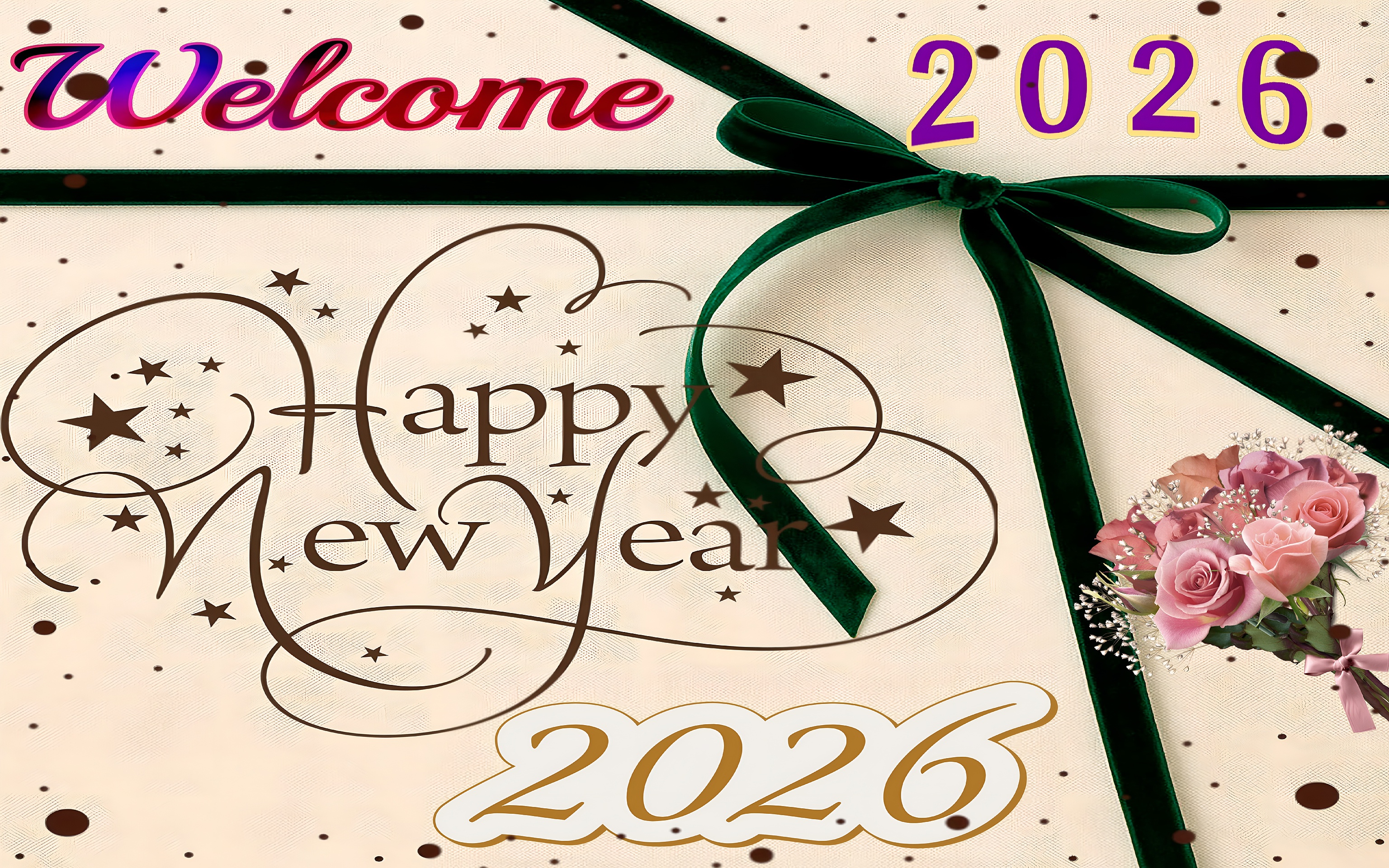This HD wallpaper captures the festive spirit of welcoming 2026 with a graceful blend of design and emotion. Featuring a lush green ribbon tied in a bow, a delicate bouquet of pink roses, and a confetti-inspired dotted background, the image radiates warmth and celebration. The text “Welcome 2026” and “Happy New Year” is styled with swirling lines and stars, adding a magical touch to the composition. Perfect for those who love floral elegance and seasonal cheer, this wallpaper sets a joyful tone for the year ahead. Ideal for mobile screens, it brings a refined yet festive vibe to your device, making every glance a reminder of new beginnings.