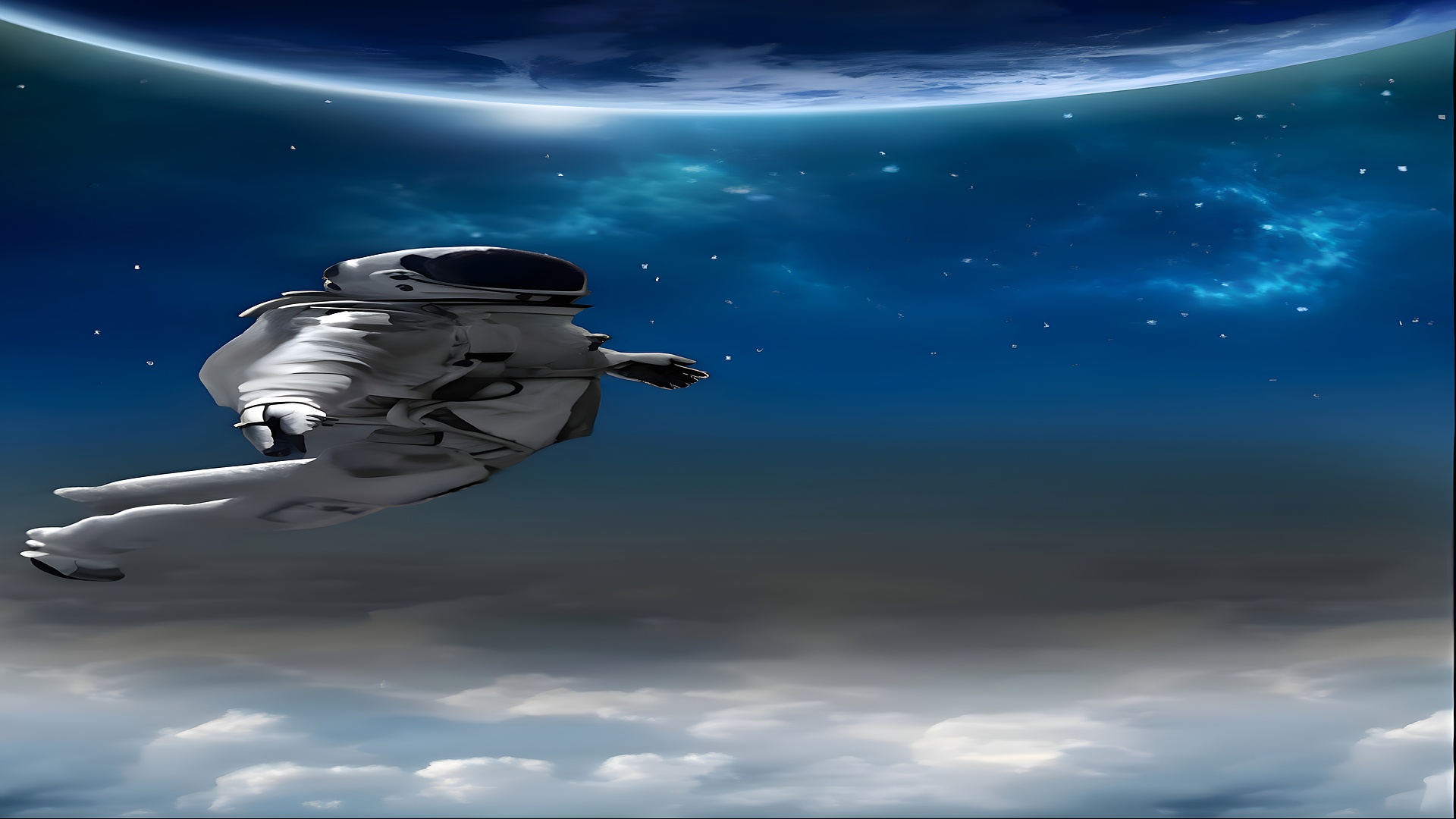 In the vast expanse of the cosmos, an astronaut floats gracefully, embodying the spirit of exploration and adventure. This breathtaking HD wallpaper captures the essence of space travel, showcasing the astronaut in a stunning deep blue backdrop that evokes a sense of wonder and tranquility. The metallic silver of the astronaut's suit contrasts beautifully with the celestial surroundings, creating a visually striking image that draws the viewer into the depths of the universe. The ethereal glow of distant stars and nebulae adds to the mystique, making this piece a perfect choice for anyone looking to enhance their desktop background or mobile wallpaper with a touch of cosmic elegance.