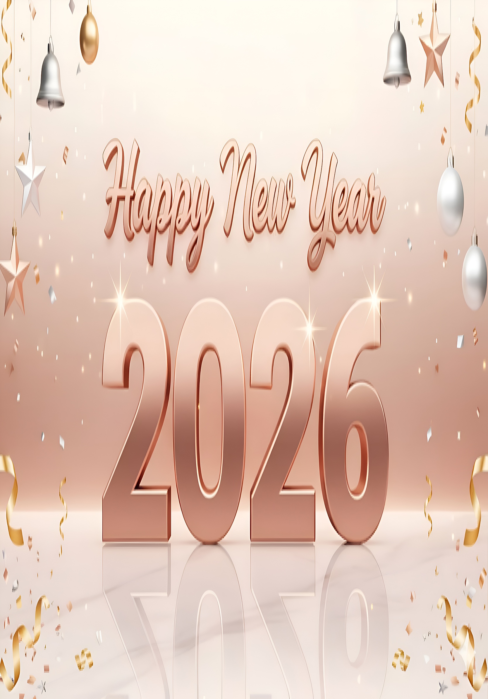 This high‑quality wallpaper titled Happy New Year 2026 Celebration is part of our Holiday Celebrations collection. It has been fully optimized for Mobile devices and is available in a crisp 4320x7680 resolution with a file size of 4 MB. Dominant colors include Rose Gold, Silver, Soft Beige, White, giving this wallpaper a visually balanced and appealing aesthetic.