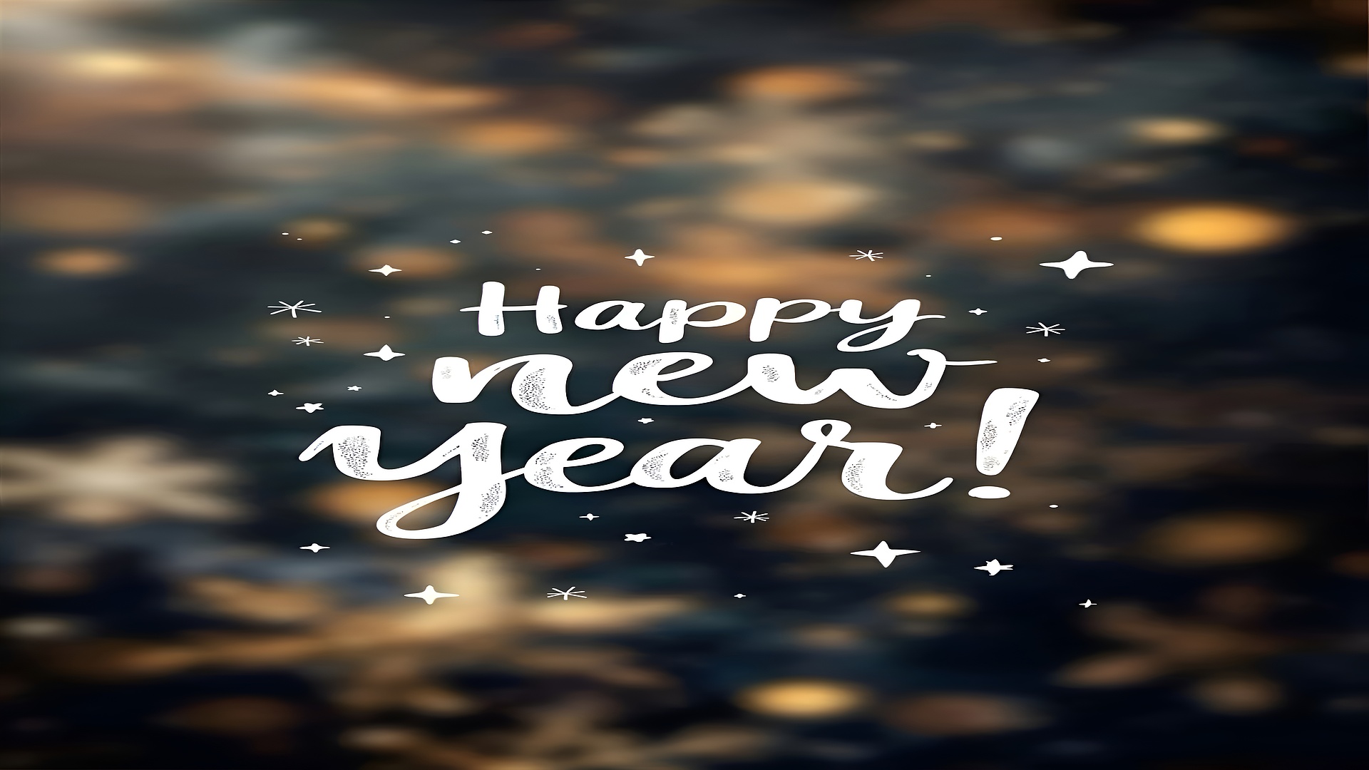 Celebrate the arrival of the new year with this beautifully crafted Happy New Year Festive Wallpaper, designed to bring warmth and joy to your digital screens. This HD wallpaper features a charming handwritten-style greeting "Happy new year!" set against a dreamy, softly blurred background filled with glowing bokeh lights and delicate snowflake shapes. The combination of warm gold, soft white, deep navy, and subtle amber tones creates a cozy and inviting atmosphere, perfect for welcoming fresh beginnings and festive spirits.