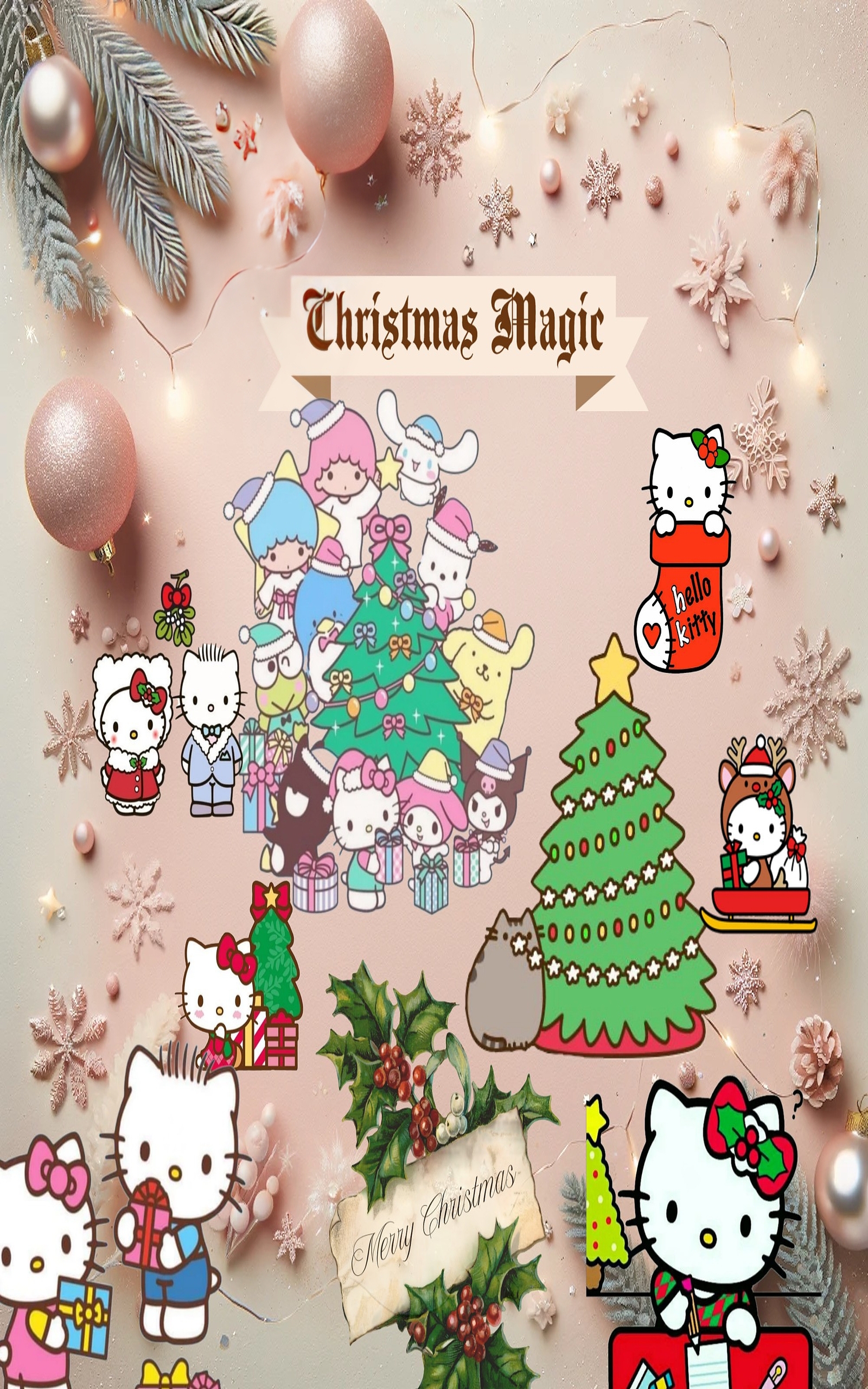 Embrace the festive season with this adorable Hello Kitty Christmas Magic wallpaper. The combination of soft pink, bright red, and emerald green creates a cheerful mood that is perfect for the holidays. This wallpaper not only serves as a beautiful piece of wall art but also as a reminder of the joy and magic that Christmas brings. Ideal for anyone looking for cute holiday wallpapers or festive backgrounds, this design will surely brighten up your digital space. With its charming characters and vibrant colors, it’s the perfect addition to your collection of Christmas-themed backgrounds.