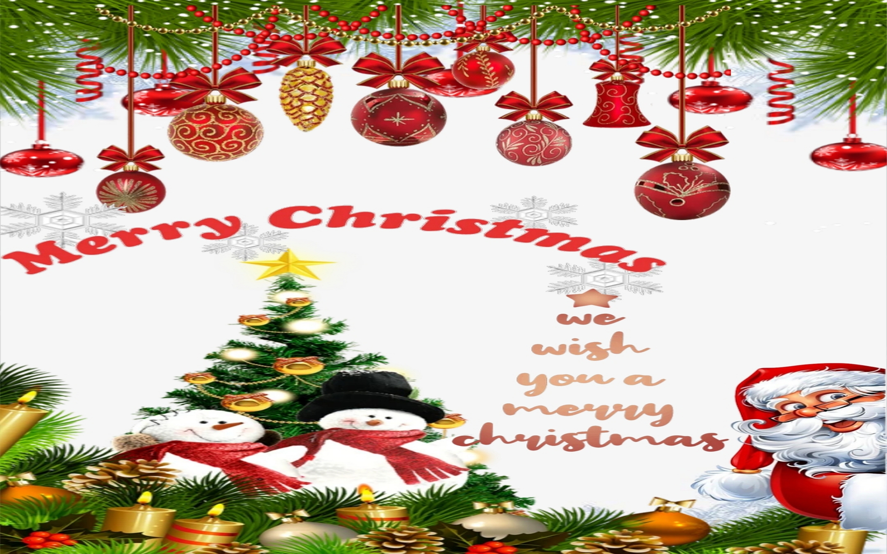 This vibrant HD wallpaper captures the heartwarming spirit of Christmas with a beautifully decorated tree, cheerful snowmen, and a jolly Santa Claus. The scene is adorned with glowing ornaments, wrapped gifts, and festive pine branches, creating a joyful atmosphere perfect for the holiday season. The rich colors and charming details make it ideal for spreading cheer and warmth. Whether you’re sending greetings or simply embracing the festive mood, this wallpaper brings the magic of Christmas to your screen with elegance and delight.