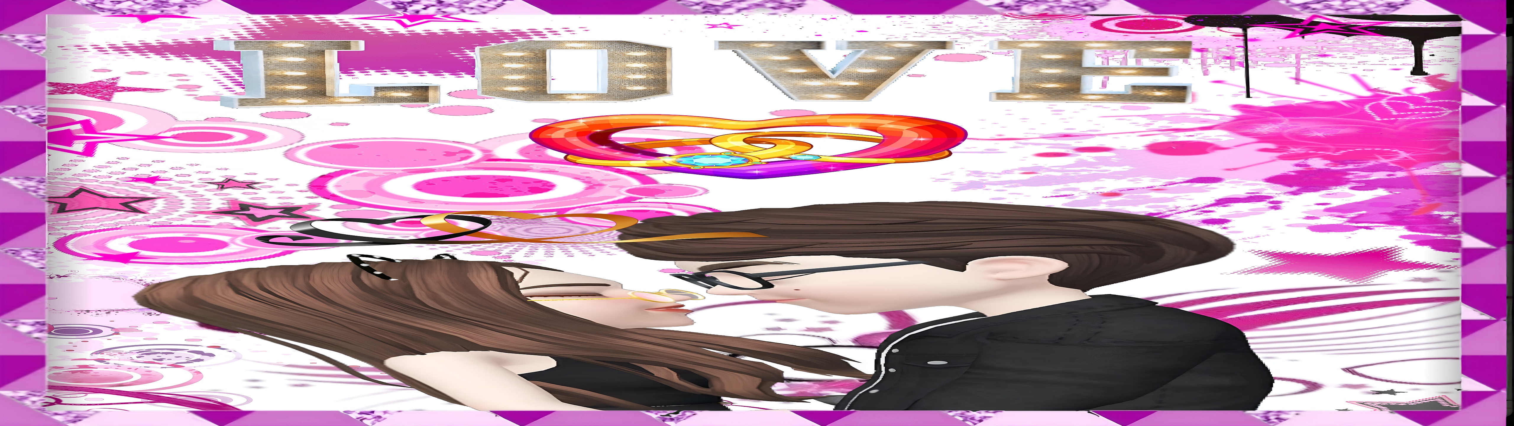 This wallpaper showcases a digital cartoon style with smooth, clean lines and a polished finish. The use of vibrant pink and soft purple hues creates a dreamy and affectionate mood, while the glowing gold accents on the rings and marquee letters add a touch of elegance and warmth. The background’s abstract patterns, including stars and circular motifs, contribute to a playful and energetic feel, making it ideal for romantic-themed digital art lovers. The couple’s detailed facial features and accessories, such as the woman’s cat-ear headband and their stylish glasses, give the image personality and charm, appealing to fans of modern animated illustrations and love-themed art.